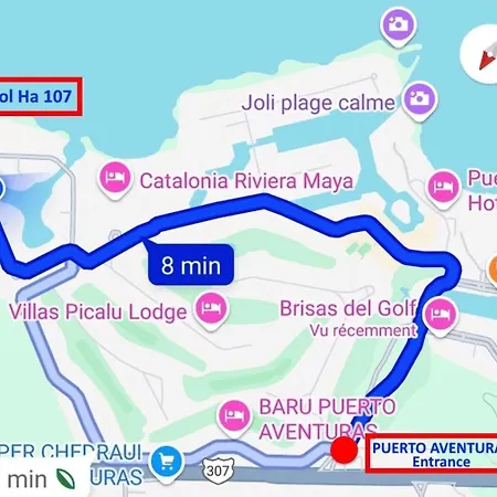 The 110 m² Joyol Ha 107, Lagoon View, 3-Min Walk To Beach Puerto Aventuras apartment includes a terrace and is located 3.5 km from the Dolphinaris Barcelo. Access to a swimming pool ensures a more relaxing stay.